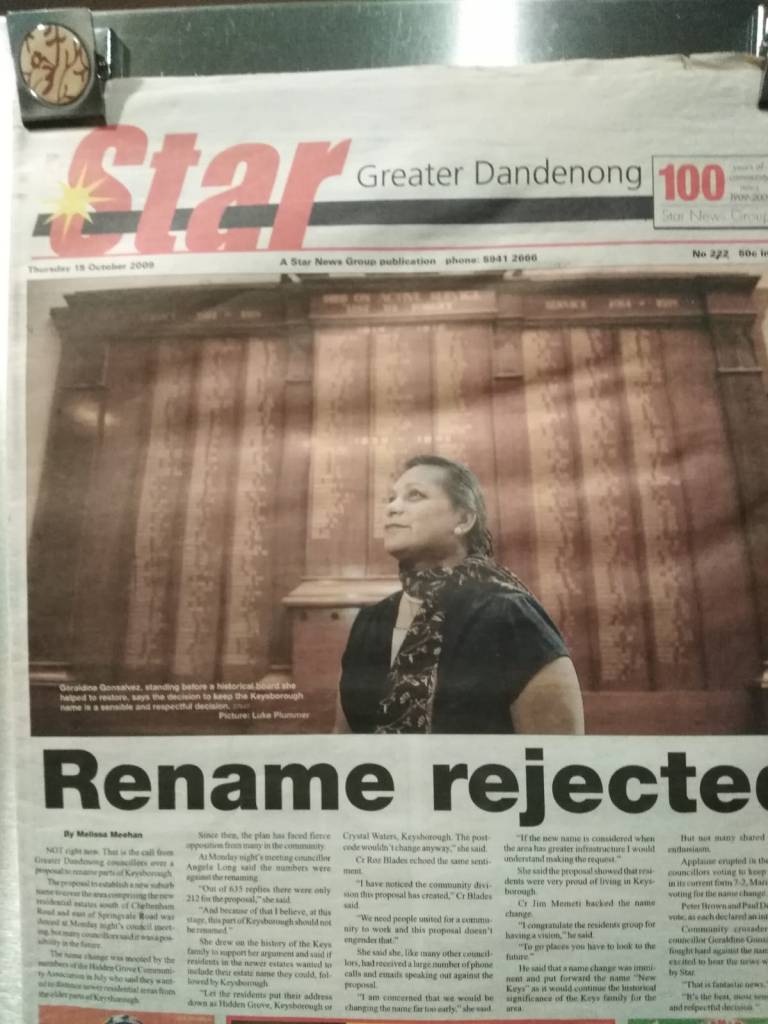 The paper says it all! An effort rename Keysborough successfully lost to the joy of many!