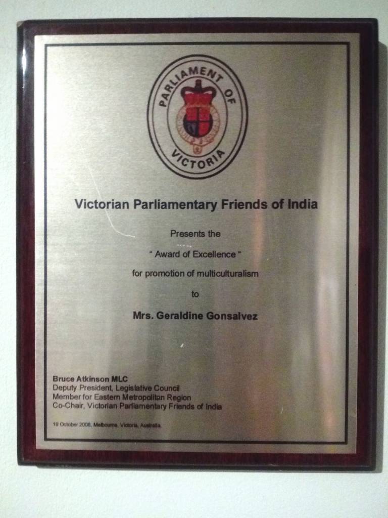 Geraldine readily devotes time voluntarily to share celebrate and educate Australians on the colourful diverse cultural blend of India’s rich heritage.