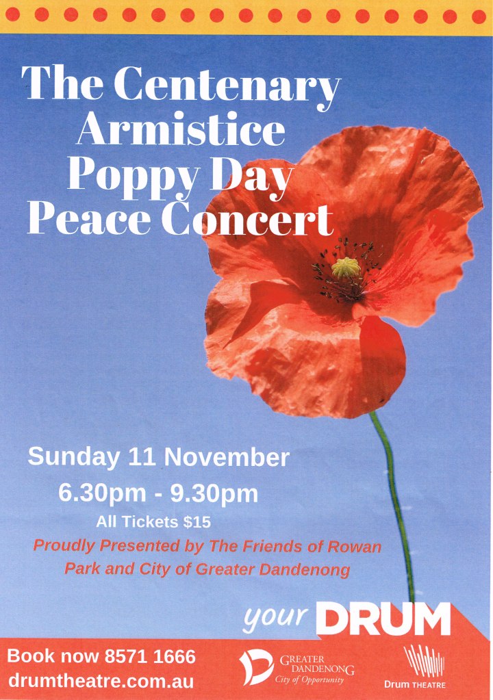The Centenary concerts commemorating the end of the WW1 and WW2 in Dandenong’s Drum Theatre hosted by our Rowan Park Friends.