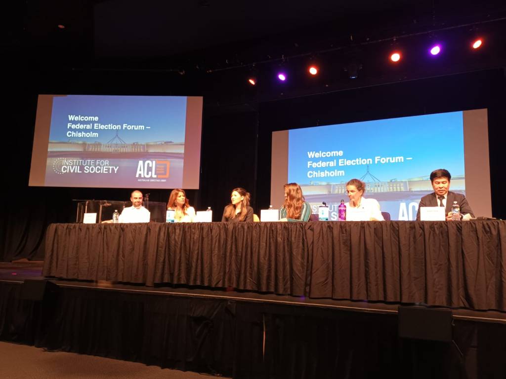 At the candidate debate between Gladys Liu and Carina Garland hosted by the abc 774 program in the states most marginal seat of Chislom conducted by Raphael Epstein on Thursday the 28th of April from the Glen shopping centre in Glen Waverley.