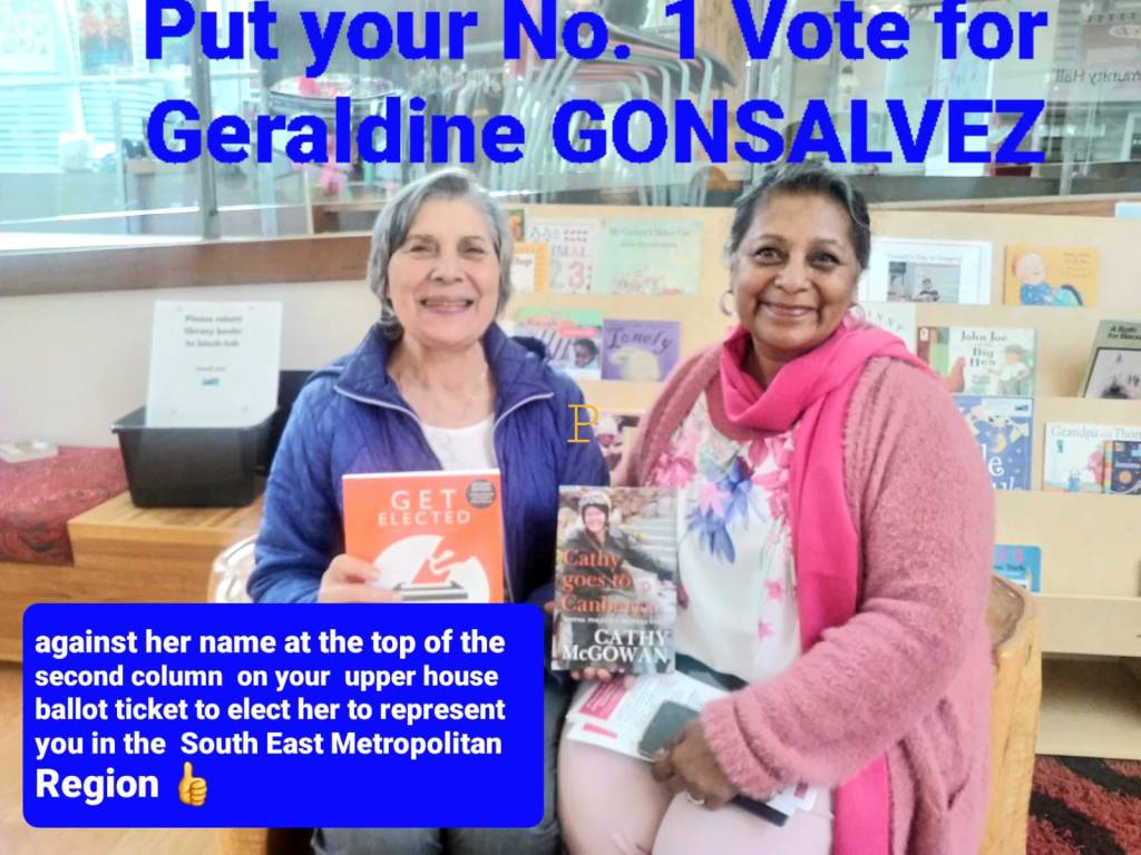 A vote 1 for me against my name and the Health Australia Party is the best possible way to help get me ‘Geraldine Gonsalvez’, a genuine local who has been a very active resident and who knows this region, its strengths and weaknesses through and through. Heath is our primary focus and will be a priority focus for change. If this happens and I am elected, you will be a part of history, as this has never, ever happened before.