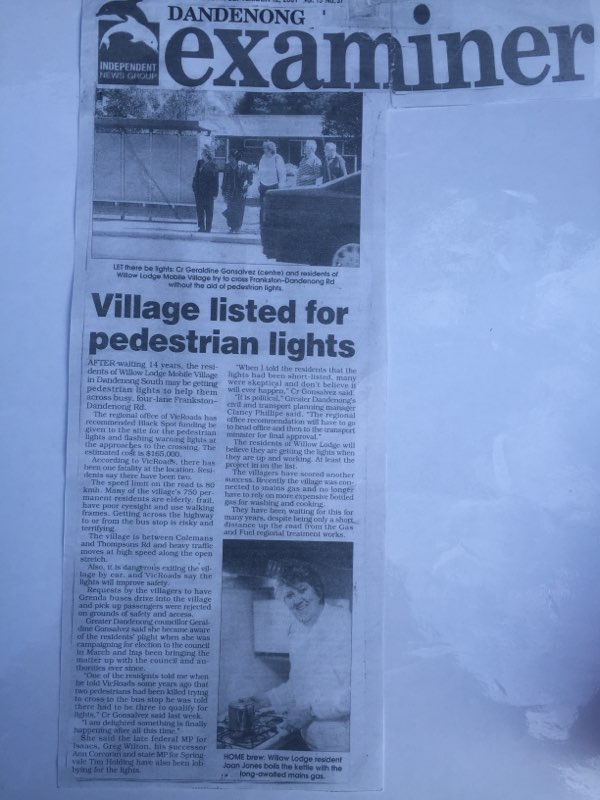 Geraldine is an active voice in the Dandenong Community and has many letters published in local and national newspapers.